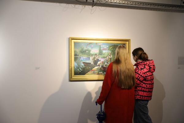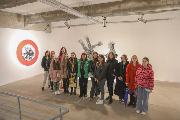 Екскурсію в «ЄрміловЦентрі» провела директорка центру сучасного мистецтва Наталія Іванова, яка розповіла про виставку «Особовий склад» та ознайомила школярів з найцікавішими експонатами.