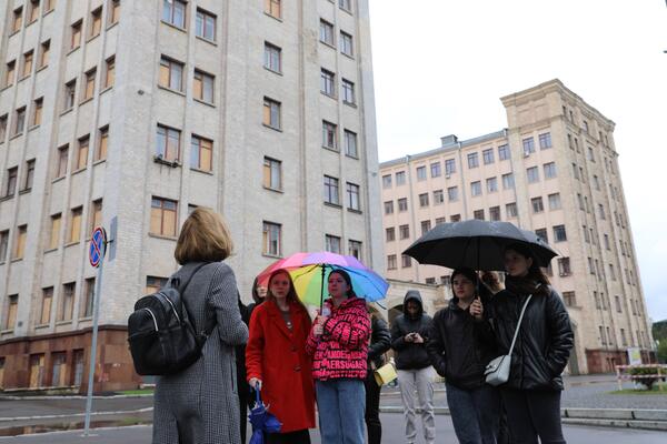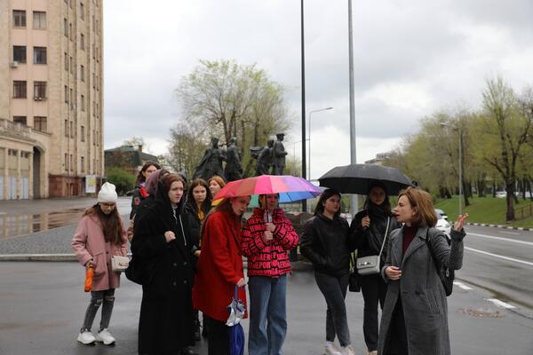Куратор проєкту Марина Григор’єва провела екскурсію центром міста, розповіла про будівництво університетських корпусів та про особливості архітектури Харкова.
